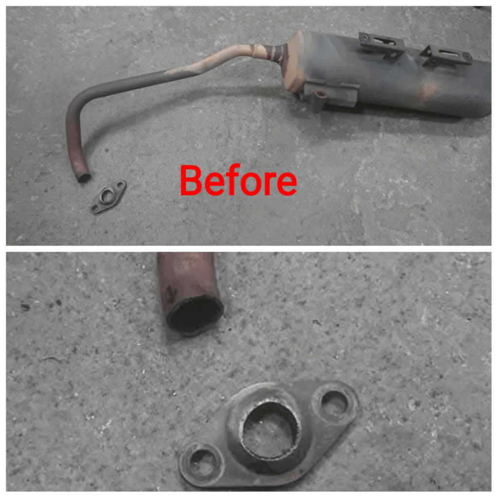 ぶつけてしまい、ズレて隙間が出来た為、ガソリンが漏れたとの事この手の溶接は、爆発の危険がある為、ガソリンの臭いがしなくなるまで、専用の洗剤でよく洗い乾燥させてから、溶接修理をしました。緊張しました。